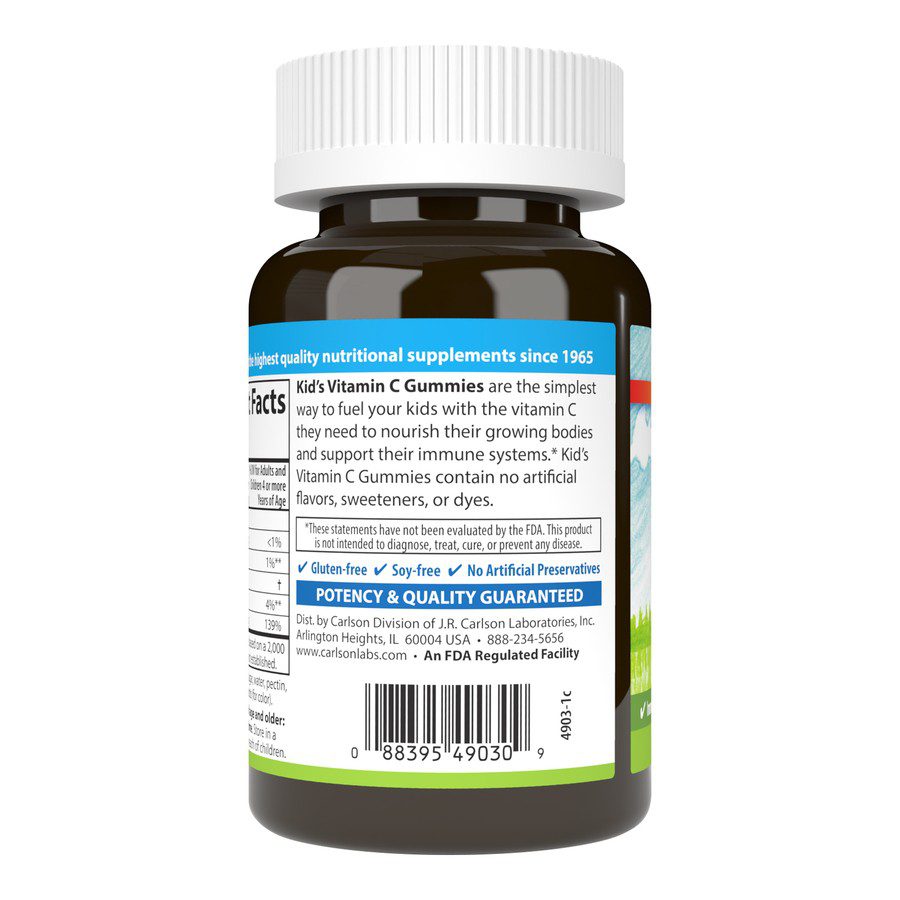 Kid’s Vitamin C Gummies are the simplest way to fuel your kids with the vitamin C they need to nourish their growing bodies and to support their immune systems. Kid’s Vitamin C Gummies provide 125 mg of vitamin C in each tangy orange wedge. Children can take one to two gummies daily, depending on their nutritional needs. Kid’s Vitamin C Gummies are vegetarian and contain no artificial flavors, sweeteners, or dyes. Give your kids the antioxidant power of Carlson Kid’s Vitamin C Gummies.